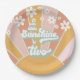 Our little sunshine is two. Retro inspired 2ndt birthday plates with 70's style daisies and boho fonts and colors.