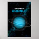This retro style "Welcome to Uranus " stylized space art poster depicts the planet Uranus on a turquoise nebula with stars and a thin grid of triangles on black background. Also available are all the planets of the solar system. Collect all of them for a dramatic wall décor.