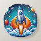 Retro, outer space rocket round pillow