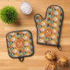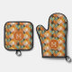 Retro Oval Shapes Orange Teal Gold Monogram Oven Mitt & Pot Holder Set