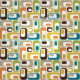 Retro Ovals white mustard teal orange green brown Fabric