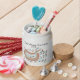 A porcelain candy jar that looks like it was hand painted. Original art sleepy owl was painted in acrylic on paper in aqua and brown. "Owl always love candy" Personalize the text for your wife girlfriend or mother