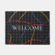 Retro 1980’s style primary color paint strokes splatter pattern on a geometric black and white dotted background.