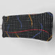 Retro 1980’s style primary color paint strokes splatter pattern on a geometric black and white dotted background.