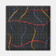 Retro 1980’s primary color paint strokes splatter pattern on a geometric black and white dotted background.