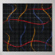 Retro 1980’s primary color paint strokes spatter pattern on a geometric black and white dotted background.