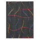Retro 1980’s style primary color paint strokes splatter pattern on a geometric black and white dotted background.