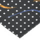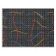 Retro 1980’s primary color paint strokes splatter pattern on a geometric black and white dotted background.
