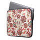 Here's an attractive laptop case with your triple letter monogram at the center on a circle banner. The banner is placed on a retro style floral background in tones of teal, reddish brown, burnt orange, gold, and white. Unique, and personalized for you!