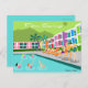 This Retro Palm Springs Hotel postcard is as fabulous as it is kitschy. Its garishly bright rainbow facade is dwarfed by the lime green mountains and spectacularly iconic palm trees. There's a party going on by the pool with bathing beauties and muscle men soaking up some vitamin D while watching the synchronized swimmers perform. It appears that only one of the swimmers knows the routine; the other four are out of sync. How embarrassing for them! The only thing that would make this design say “Palm Springs” more would be if it was written in the clouds. Oh, wait. It is!