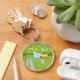 This Retro Palm Springs House with Car Premium Keychain is a mid century modern lover’s dream. The minimalist art design features a sleek orange and glass house with a dramatically sloping checkmark shape roof. The red door offsets the orange stone planter filled with greenery and the decorative turquoise cinderblock privacy screen. Staggered concrete blocks form the perfect walkway through the lush, green lawn. A white carport offers shelter to a turquoise and white classic 1950’s car with fins. The car is perfect for driving around the green, rounded mountains in the distance. The kitschy 1960’s style house looks like a shady oasis from the hot, Palm Springs sun.