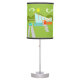 This Retro Palm Springs House with Car Table Lamp is a mid century modern lover’s dream. The minimalist art design features a sleek orange and glass house with a dramatically sloping checkmark shape roof. The red door offsets the orange stone planter filled with greenery and the decorative turquoise cinderblock privacy screen. Staggered concrete blocks form the perfect walkway through the lush, green lawn. A white carport offers shelter to a turquoise and white classic 1950’s car with fins. The car is perfect for driving around the green, rounded mountains in the distance. The kitschy 1960’s style house looks like a shady oasis from the hot, Palm Springs sun.