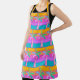 This Palm Springs sunset stripes apron with colorful palm trees is so much fun! Playful vibrant multicolor hues invoke the midcentury modern vibe of the desert oasis Palm Springs, California.