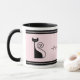 One of my most popular motifs and color combinations! This Paris chic kitty cat mug is so retro cool in pink & black with the words ~Paris France~ printed in between these two funky felines.