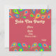 Colorful paisley pattern with red ,neon green ,blue droplets .Playful retro invitation card with oriental touch .Great at retro parties ,birthdays ,celebrations or for any other cheerful occasion .Template design by Alma Wad .Customize both sides now with the details of your own party/event /announcement .