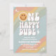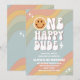 Celebrate your little ones milestone with this retro pastel 1st birthday invitation featuring playful wavy stripes, bold typography, and whimsical details like smiley icons and sparkles. Perfect for a fun, nostalgic party theme, this customizable card sets the tone for peace, love, and joy. Designed to impress guests and optimized for search visibility, its ideal for parents planning a stylish, memorable celebration.