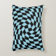 Retro Pastel Blue Black Warped Check Checkered Accent Pillow