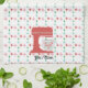 This playful Christmas kitchen towel has bright colored text on a red stand mixer saying "Baking Spirits Bright" with a diamond patten in the background. Colors include pink, red, green and light blue. You can personalize with a name.