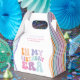 Retro pastel colourful modern minimal funky birthday era party decor favor box design.