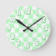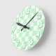 Retro Pastel Green White Wavy Checker Pattern Round Clock