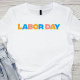Celebrate Labor Day in style with this retro-inspired t-shirt featuring playful pastel lettering. The vibrant colors of yellow, blue, pink, and orange outlined in black give a fun and nostalgic feel to the design, making it perfect for both casual wear and holiday festivities. The simple yet bold "LABOR DAY" text stands out, ensuring you make a statement wherever you go.