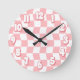 Retro Pastel Pink White Wavy Checkerboard Round Clock