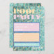 A retro, 80s/90s inspired pool party invitation using one of my own photos as the background. Lettering and graphics in bright pastel block colors.