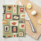 Retro pattern with kitchen dishes for breakfast towel