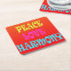 Colorful neon letters on these wonderful Retro Peace Love Harmony square coasters.