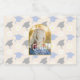 Retro graduation with grad caps in shades of blue and gray with white flowers against a light peach background. Colors can be customized to your choosing. Photo template via Pixabay licensed under CC0 and must be replaced with your own photo.