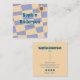 Bring a splash of retro charm to your professional identity with this periwinkle and peach checkerboard business card. Featuring bold typography, a cheerful daisy icon, and a soft yet playful color palette, this design is ideal for creatives, influencers, entrepreneurs, or small business owners. Personalize it with your name, title, contact info, and social media handles to make networking effortless and stylish.