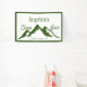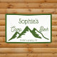 Personalize your camp site or cabin with this vintageCamp Bach banner. Retro style lettering in forest green. Personalize the bachelorette's name on top and the location at the base of the mountains or change that to "last trail before the veil" or any custom text to suit the celebration.