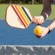 Create your own retro personalized pickleball paddle. Features abstract vintage stripes design and custom name in a classic style typography.