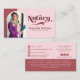 Retro, trendy Notary photo business card features single photo inside arch frame, typography script ''Notary'' your name and title on the front, contact details , social media and services on the back.