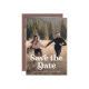 This is a bohemian wedding save the date card using a retro vintage style font along with a modern and simple photo design.