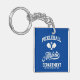 Fun pickleball keychain featuring crossed pickleball paddles, ball and retro typography. Add your custom text to personalize - team name, club name, town, city, tournament name, etc. Makes a great gift for pickleball players, coaches, teammates, etc.