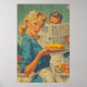 A cheerful 1950s housewife presents a delicious pie while her husband reads the newspaper, capturing classic mid-century Americana with vibrant vintage charm. Ideal for nostalgic greeting cards.