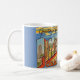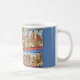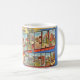 Bright, colorful retro postcard of the Pikes Peak region of Colorado repurposed on a mug.