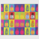 Modern art pattern of pineapple graphic illustrations on bold bright squares gift wrapping paper