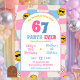 Retro Pink and Blue Checkered 67 Joint Birthday Invitation, The Most 67 Party Siblings Birthday Invite, Editable Double Birthday