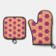 Retro Pink and Orange Modern Geometric Pattern Oven Mitt & Pot Holder Set