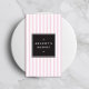 Chic pink and white stripes bring a retro personality to this bakery business card. Reminiscent of ice cream parlors and candy shops of yesterday, this design is sure to bring a touch of nostalgia to your business brand. Created for bakeries, cake decorators, catering companies, sweets, home baked goods or any business looking for a stylish motif. Your name is simply styled in a black square on the front, while your contact info and details are available on the backside. Design © 1201AM Design Studio