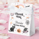 Sweet retro style birthday favor bag featuring a pink ghost, black cat, witches hat, scull, pumpkins and more in pink, black and orange. Great for an October Halloween themed first birthday but can be used for any age.