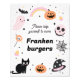 Sweet retro style birthday party sign featuring a pink ghost, black cat, witches hat, scull, pumpkins and more in pink, black and orange. Great for an October Halloween themed first birthday but can be used for any age.