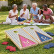 This isn't just a game; it's a centerpiece for creating lasting memories. Built for durability and smooth play, the boards are finished with a protective coating to withstand countless seasons of fun. Each set includes the bags for immediate play. Create your own cherished heirloom by personalizing it with your family's initial.