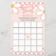 Pink check and daisy retro baby Shower Bingo game card.