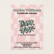 This charming hair accessory display card feature a playful pink and white checkered background with retro flowers. The font is a bold vintage retro style fully customazible in the design edit tool. The back includes a warm “Thank You” message, along with space for contact details like your shop's website, email, and phone number. Perfect for presenting your handmade jewelry, bows, clips and more with style and adding a fun personal touch.
