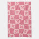Retro Pink Checkered Floral Pattern Kitchen Towel