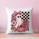 Retro Pink Coquette Ghost Girl with Bow Halloween Throw Pillow