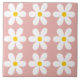 Retro Pink Daisy Floral Pattern Ceramic Tile